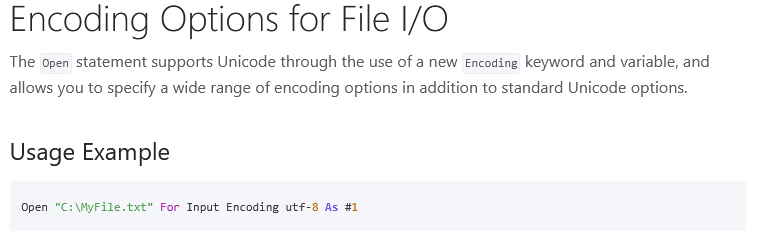 Open "Z:\tbFileIoCheck1.bin" For Binary Access Read Encoding utf_8 As #1